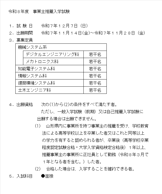 令和8年度事業主推薦入学試験出願受付開始のご案内
